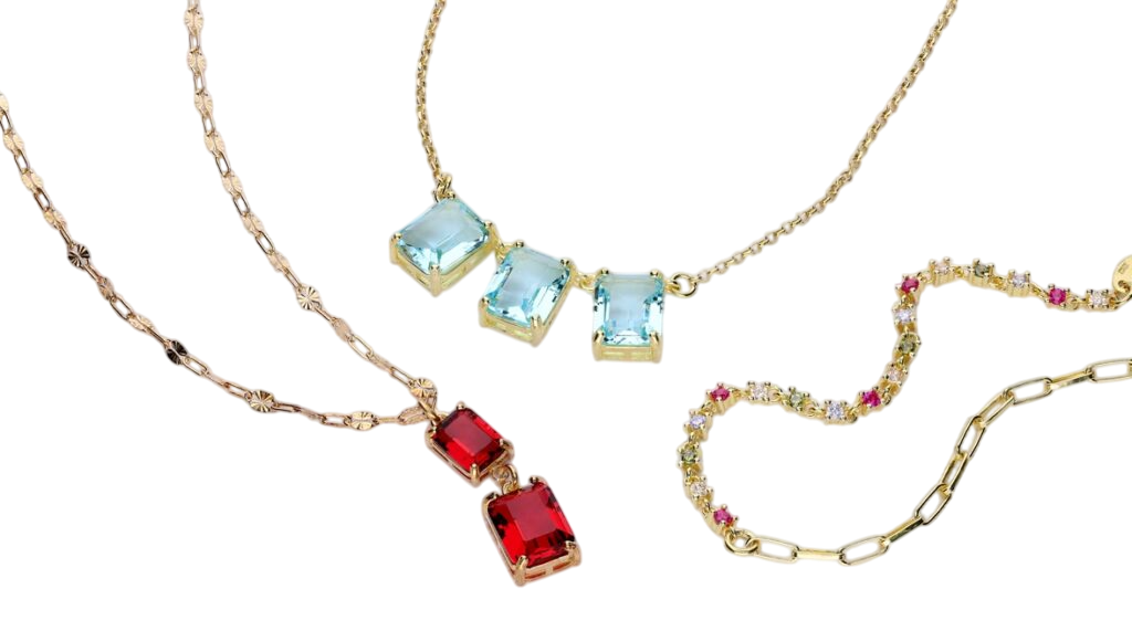 Juego de aretes y collar combinables.
